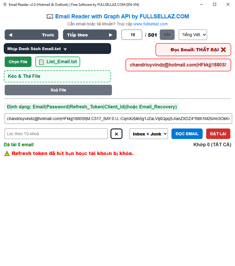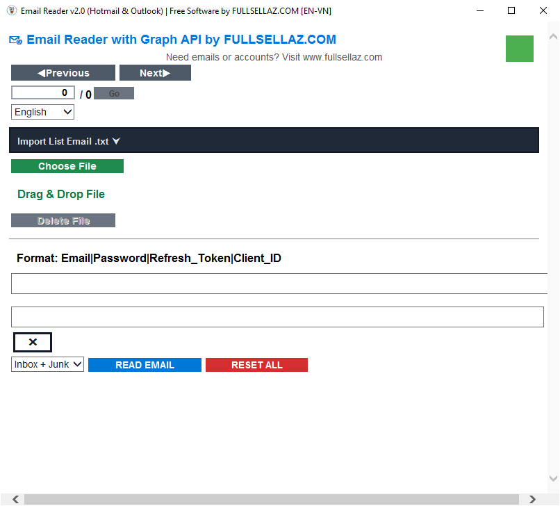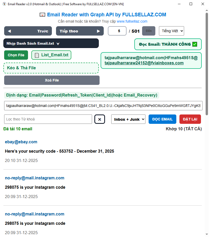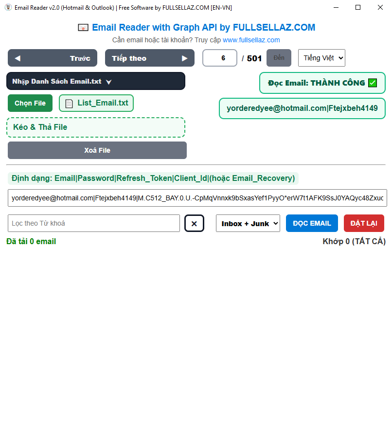 Email Reader v2.0 là phần mềm hỗ trợ quản lý email do FULLSELLAZ.COM phát triển. Công cụ này giúp bạn đọc và tổ chức hộp thư Hotmail/Outlook cực nhanh ngay trên máy tính mà không cần mở trình duyệt.